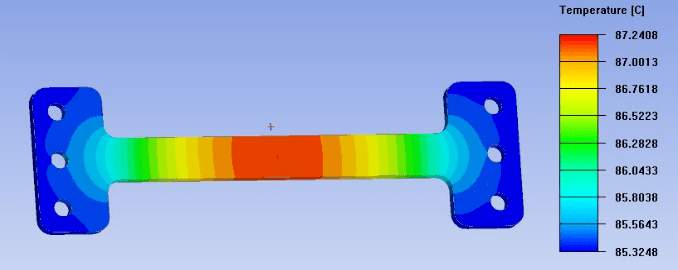 基于Icepak热仿真软件,建立热仿真模型,给输入电流,以及对应的散热边界(风速、环境温度等),可精准计算出铜排的温度。
