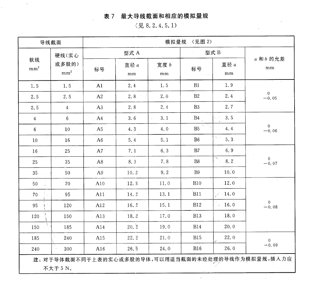 《GB/T 14048.1-2012 低压开关设备和控制设备 第1部分:总则》 中关于最大导线截面积和模拟量规的相关规定:
